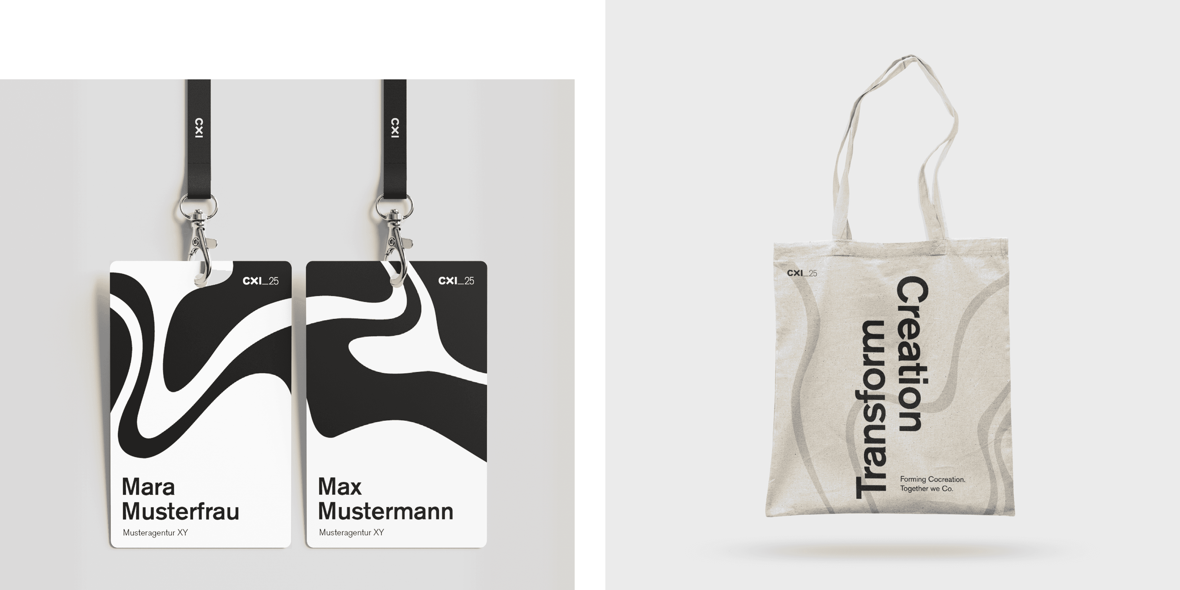 Das ‚Co‘ öffnet zusätzlich einen breiten Assoziationsraum: Von Cocreation über Connection bis hin zu Conference entstehen vielfältige Interpretationsmöglichkeiten, die den kollaborativen Charakter der CXI unterstreichen sollen. Der vertikal gesetzte Text lockert die hierarchische Struktur des üblicherweise horizontal gesetzten Textes auf. Die zwei Wortpaare stehen sich gleichberechtigt gegenüber und dienen als Sinnbild für die beiden Perspektiven, aus denen das Projekt entwickelt wurde.