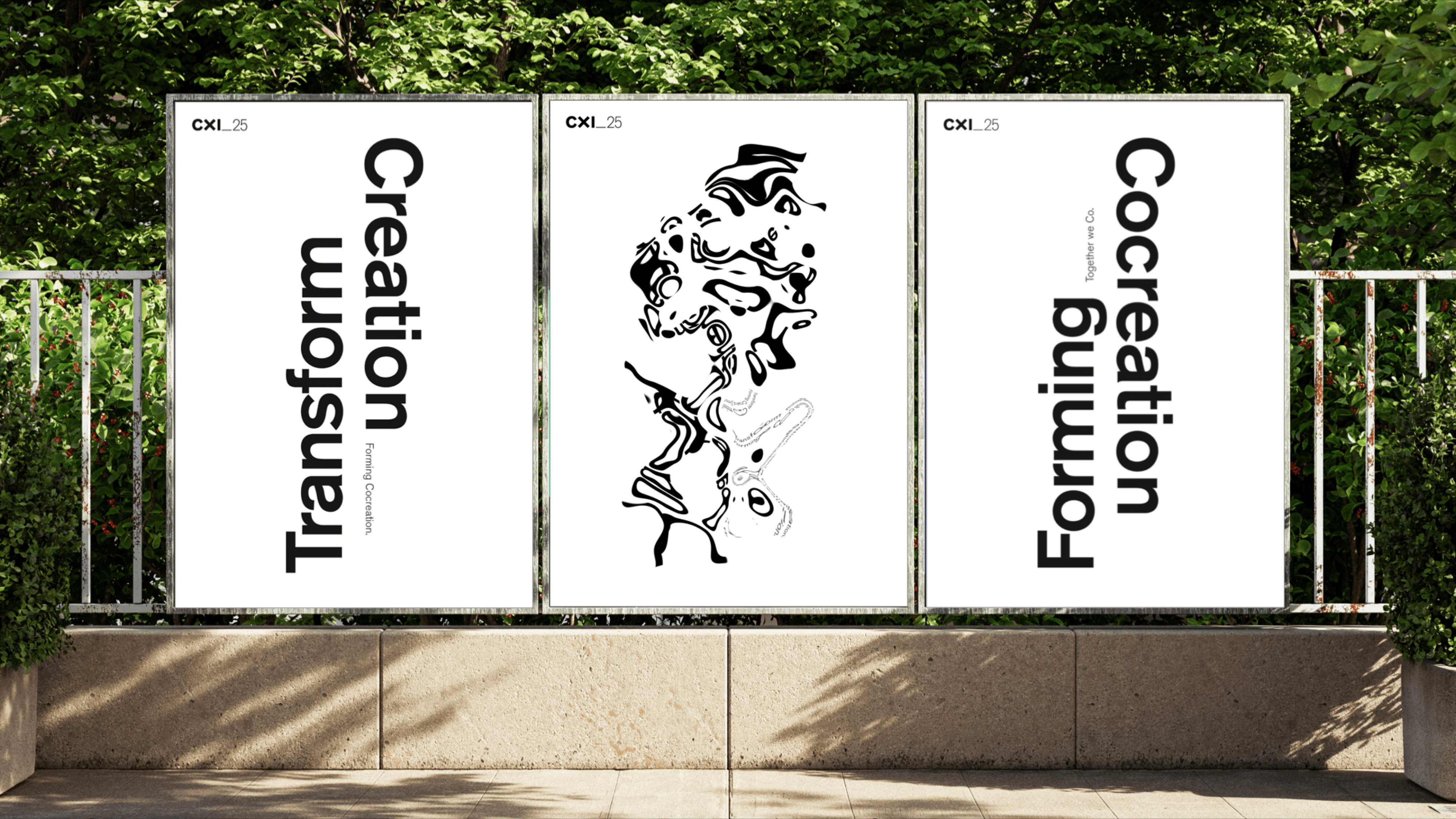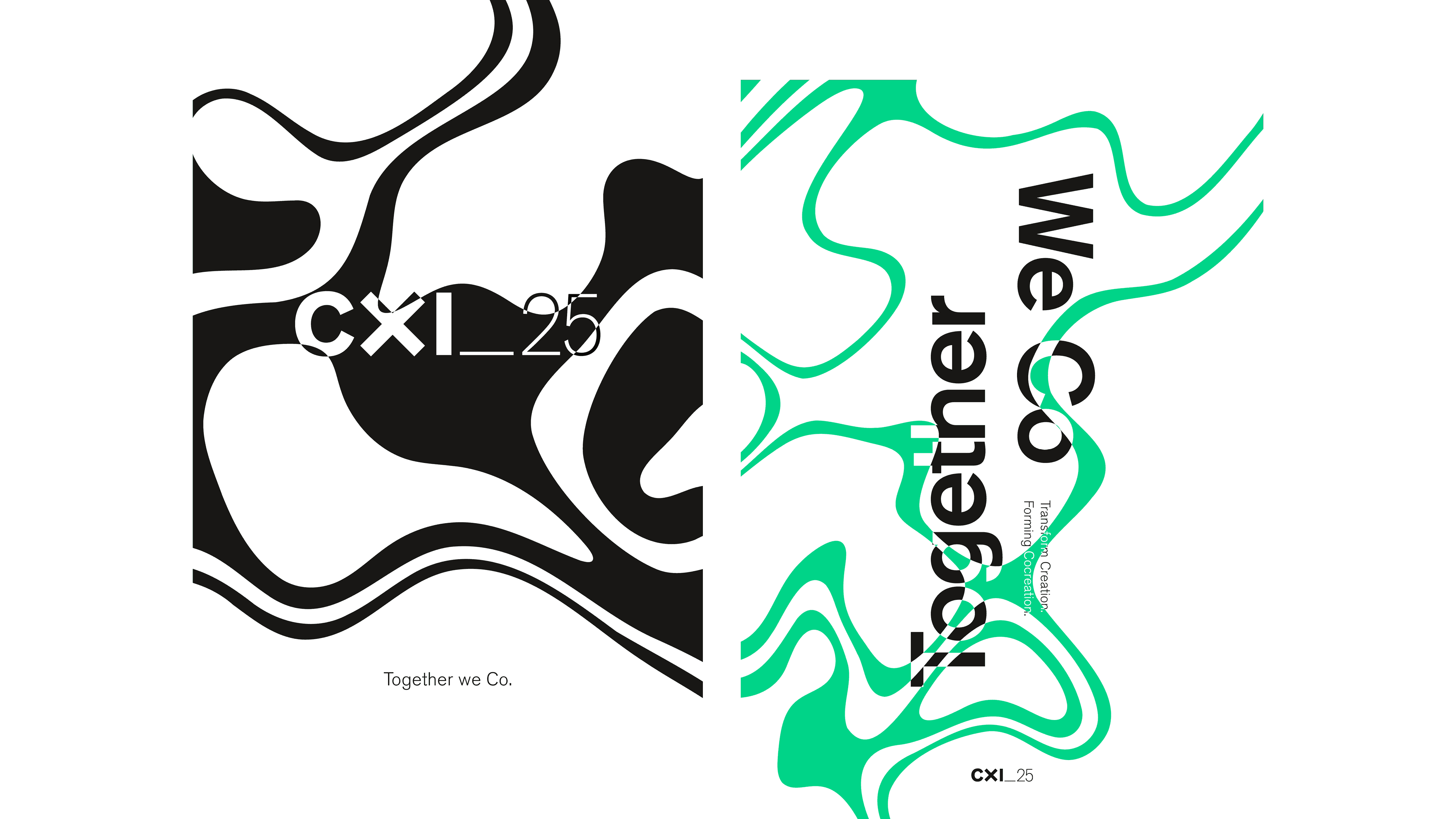Das Besondere an der CXI ist das Konzept der Dualität, das sowohl die Betrachtung von Projekten aus zwei Blickwinkeln umfasst als auch das Zusammentreffen von Agenturen und Unternehmen, Design und Marketing sowie Studierenden und Professionals. Diese Vielfalt an Erfahrungen, Perspektiven und Arbeitsweisen schafft einen Raum für gegenseitige Inspiration und Wissensvermittlung. Die Veranstaltung dient als Begegnungsort, an dem Perspektivwechsel angeregt und Wandlungsprozesse angestoßen werden können. Als studentisches Projekt sollte für die CXI 2025 ein kommunikatives Gestaltungskonzept entwickelt werden, das sich harmonisch in die bestehende Corporate Identity einfügt und auf dem Prinzip der generativen Gestaltung beruht.