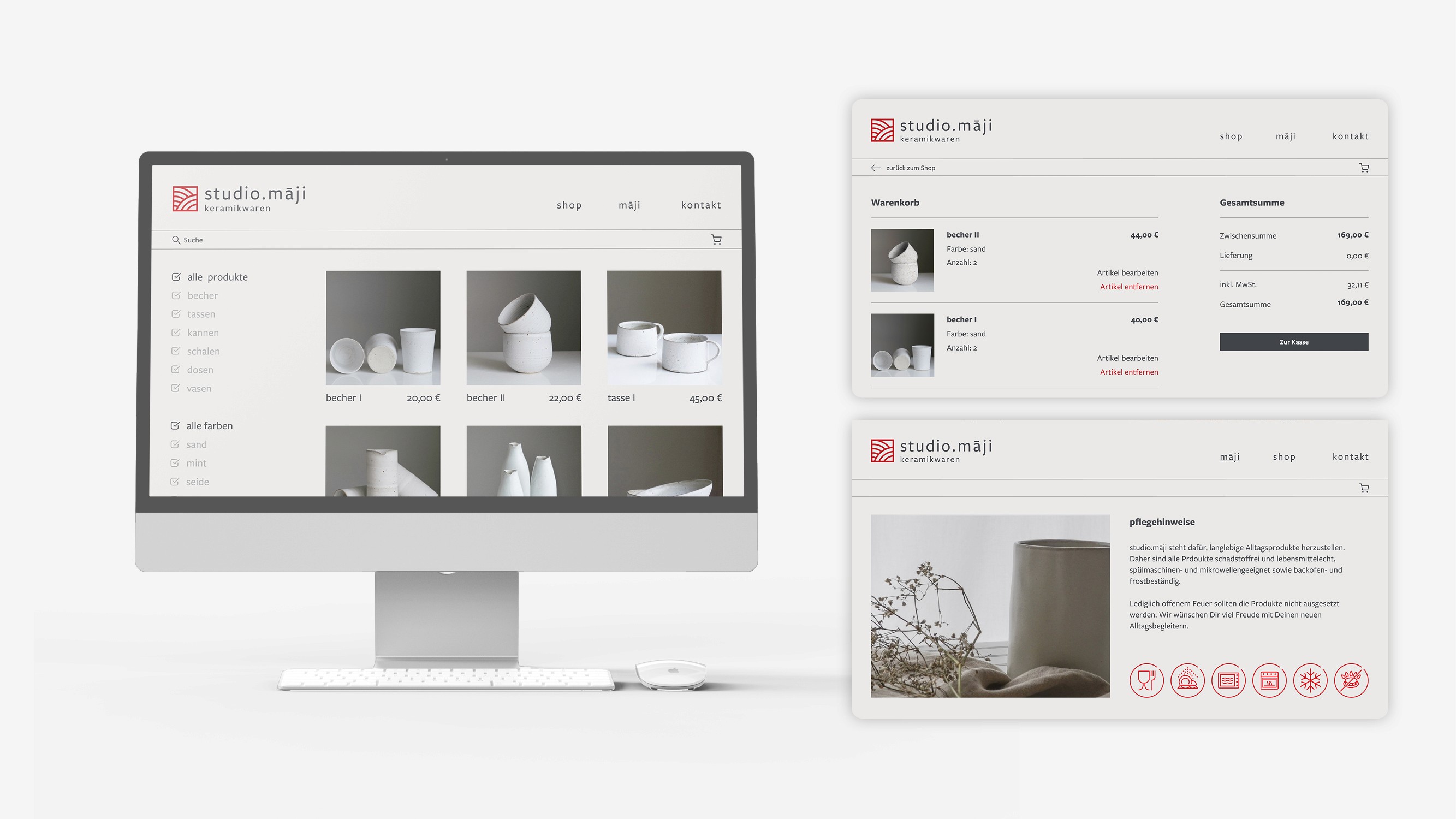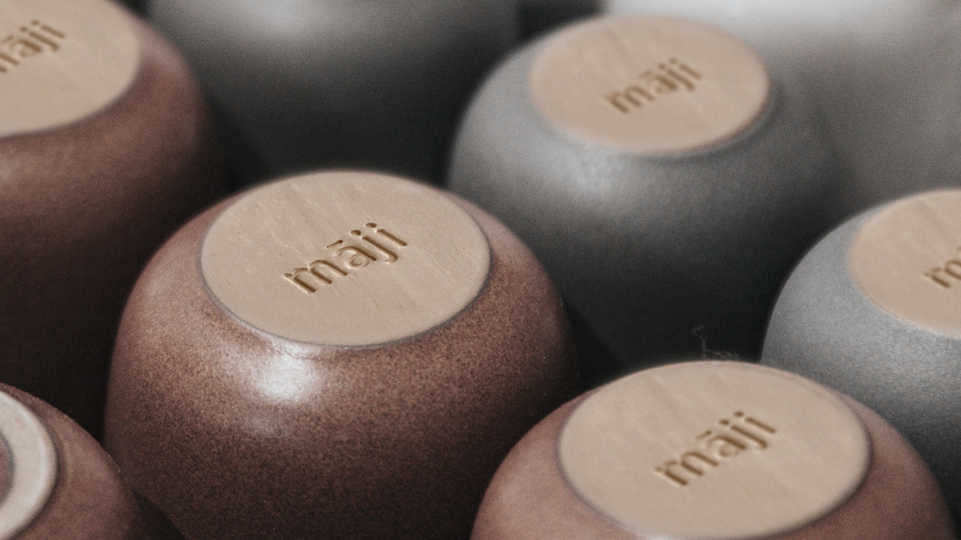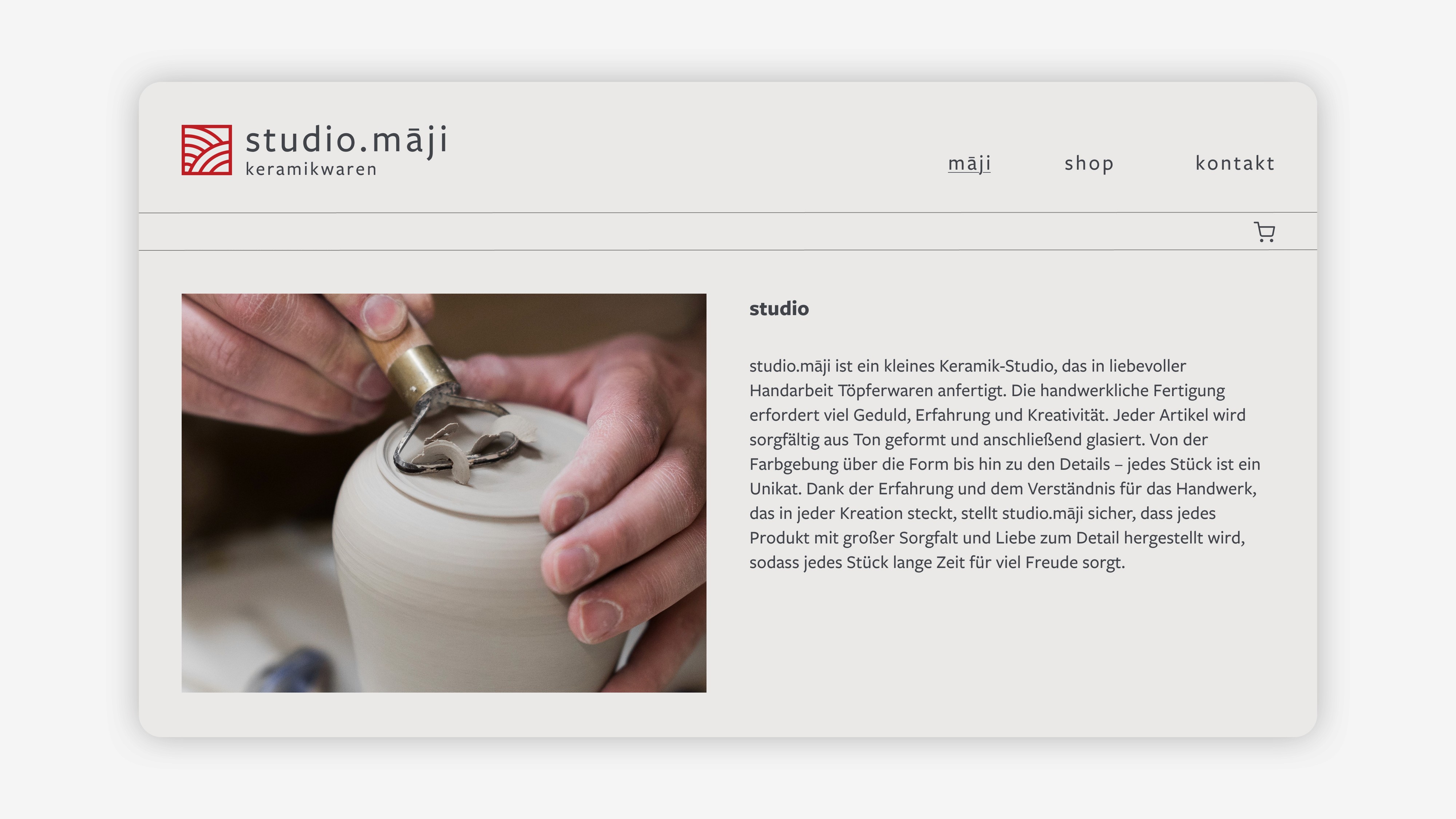 studio.māji ist eine fiktive Keramik-Manufaktur, die handgefertigte Tonwaren vertreibt. Besonders ist der Einsatz von 3D-Druck, um Gussformen für die Keramikfertigung zu erstellen. Der Name māji, entlehnt aus dem Japanischen, bedeutet ‚verschmelzen‘ und spiegelt das Konzept wider: Klassische und moderne Fertigungsverfahren verschmelzen miteinander.